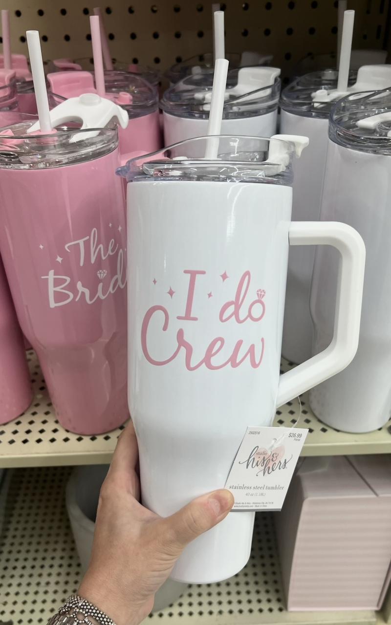 Copo térmico branco de aço inoxidável I DO CREW. Lindo p/ as madrinhas de casamento. Comporta 1.18 L