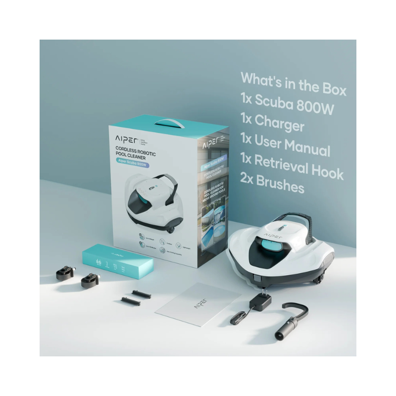 Adeus, piscineiro! Limpar sua piscina nunca foi tão simples. O Aiper Scuba 800W Robotic Automatic Pool Cleaner, com upgrade lançado em 2025, é a solução perfeita para piscinas elevadas de fundo plano com até 860 pés² (aproximadamente 80 m²) ou 30 pés de comprimento (cerca de 9 metros).