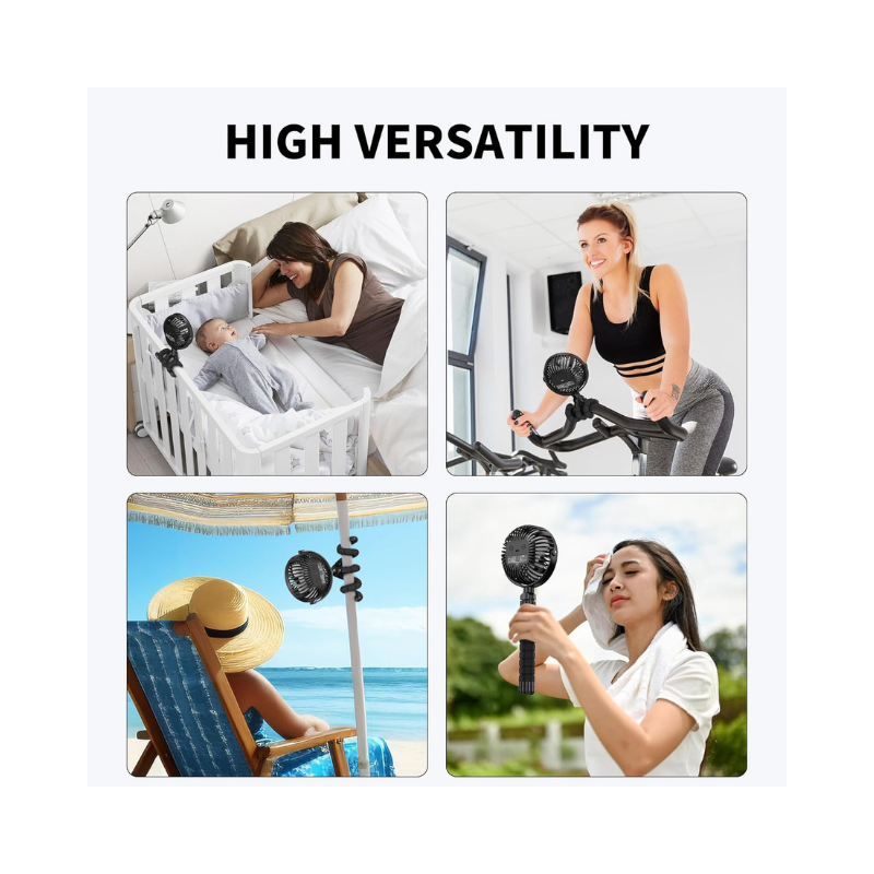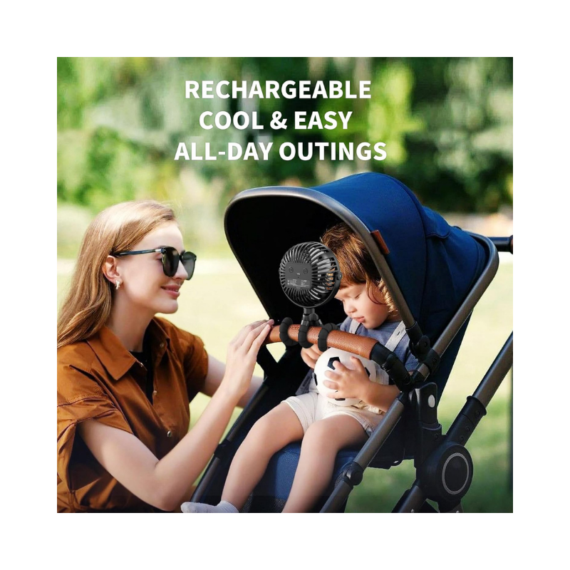 Projetado para Bebês: O mini ventilador possui um tripé/pernas flexíveis, sendo versátil e fácil de prender na maioria dos carrinhos de bebê, berços, cadeiras de rodas, carruagens, etc., em qualquer posição. É um salvador para cadeirinhas de carro, especialmente as voltadas para trás, proporcionando uma viagem fresca e confortável para seu filho e para você.