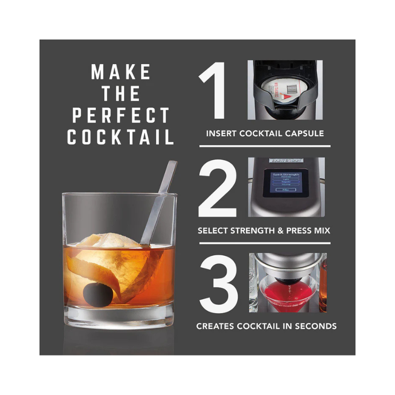 Cápsulas de coquetel: Cada cápsula contém a mistura perfeita de sucos naturais, bitters e extratos para um sabor autêntico.