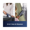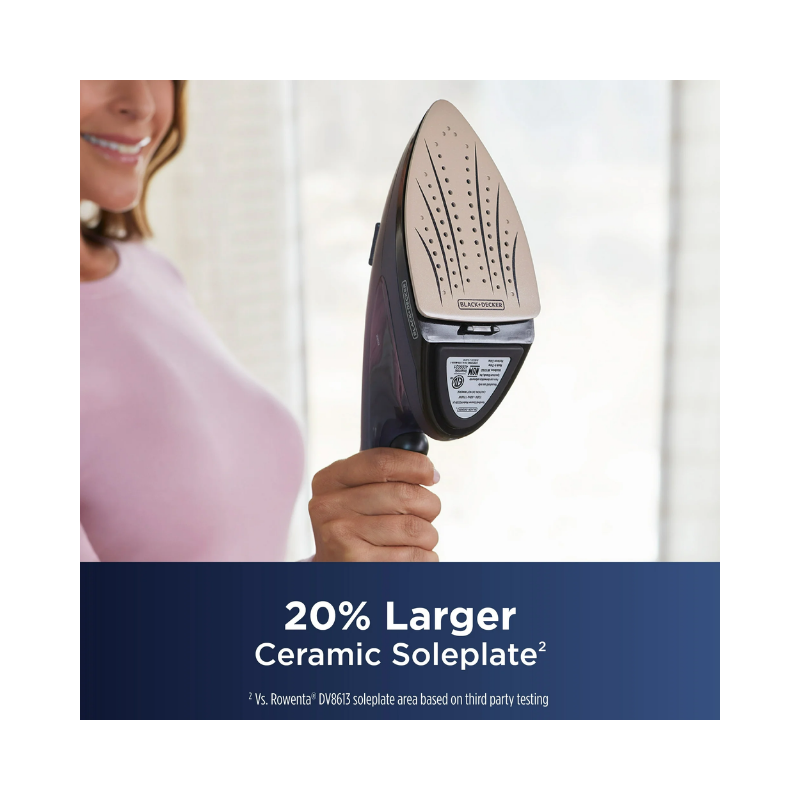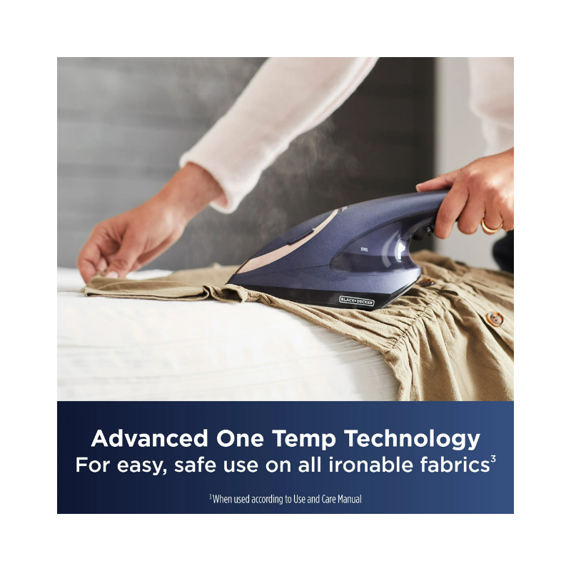 BLACK+DECKER Press & Steam 2-in-1 Iron and Steamer, HGS500, ombina as funções de ferro e vaporizador para resultados profissionais em casa. Equipado com a avançada tecnologia One Temp, ele oferece uma única configuração de temperatura, eliminando a necessidade de ajustes e garantindo segurança para todos os tecidos passíveis de passar. Com 180% mais vapor em comparação a modelos concorrentes*, este aparelho combate rugas e renova os tecidos sem o uso de produtos químicos agressivos. Sua base cerâmica maior em 20% e infundida com amaciante de tecidos suaviza até mesmo os vincos mais profundos, enquanto condiciona os tecidos para prevenir novas rugas. Com 1700 watts de potência, aquece rapidamente e remove rugas de forma eficiente. Uma solução prática e moderna para quem busca qualidade e versatilidade.