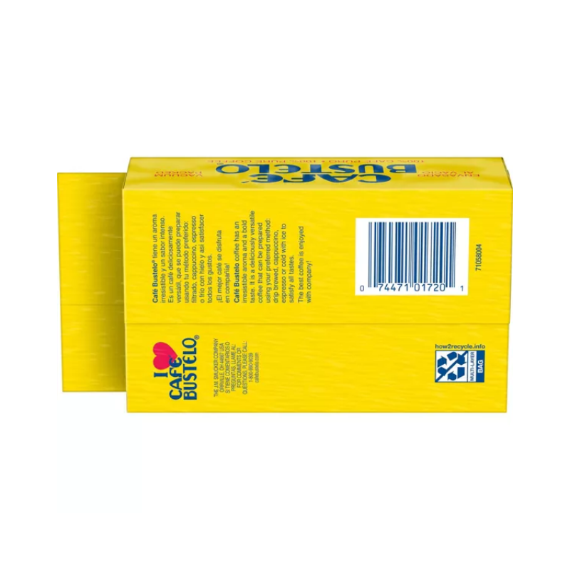 Café Bustelo Espresso Dark Roast Ground Coffee, Vacuum-Packed Brick. O Café Bustelo Espresso Dark Roast é um café moído de torra escura, conhecido por seu sabor encorpado e robusto, ideal para preparar espressos autênticos ou cafés fortes no estilo latino. Embalado a vácuo em tijolo de 10 oz (283 g), preserva o aroma e frescor do café por mais tempo.
