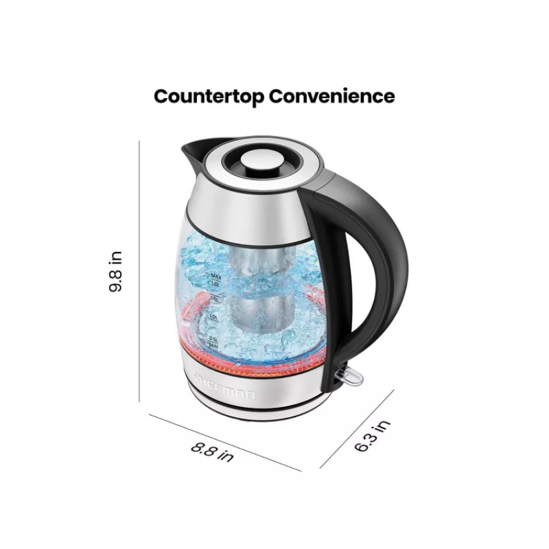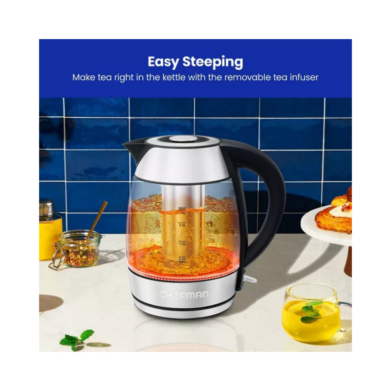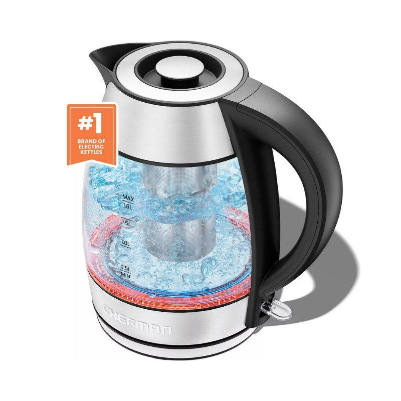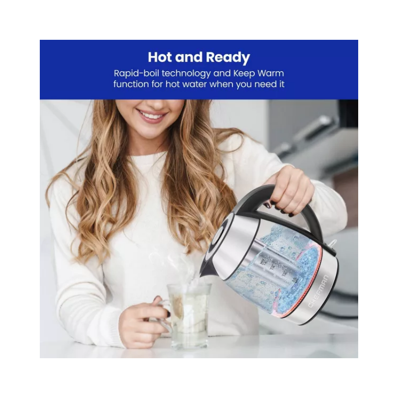 Chefman 1.8L Rapid-Boil Kettle with Keep Warm and Tea Infuser – Stainless Steel: Electric Water Boiler, 1500W, Silver
