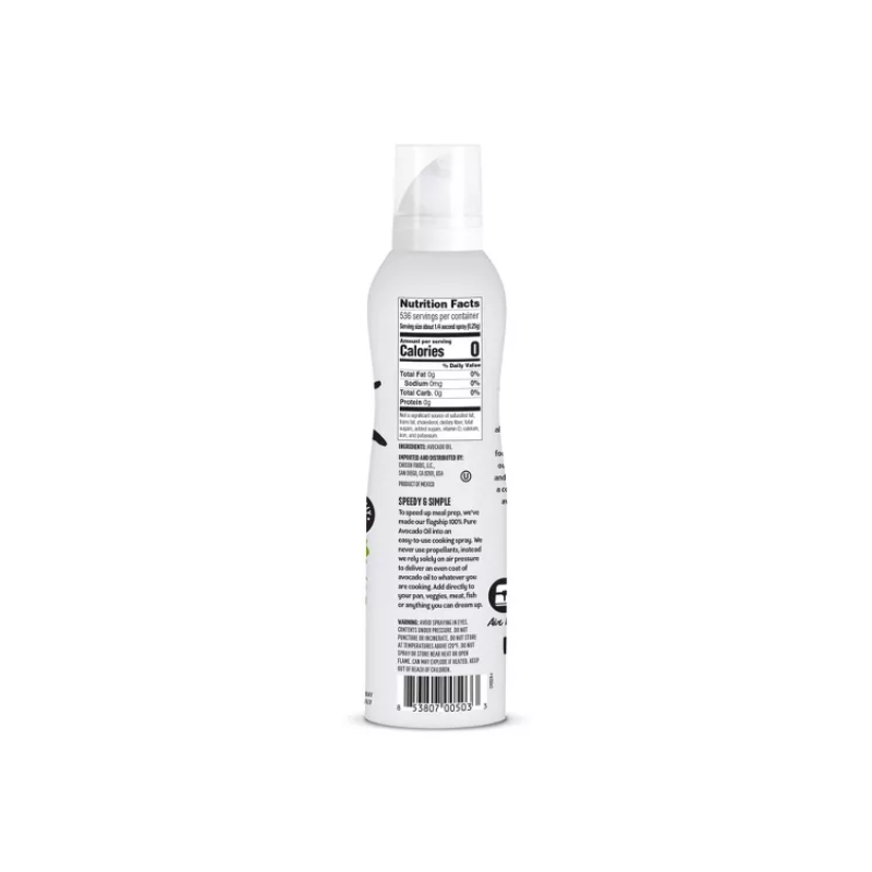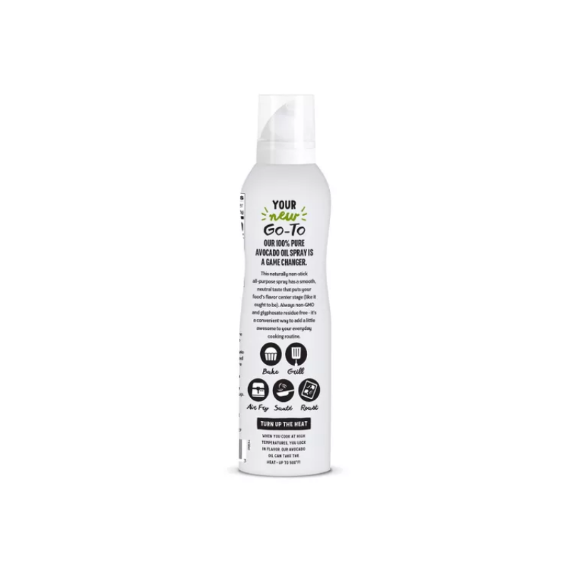 Para agilizar o preparo das refeições, reinventamos nosso famoso Óleo de Abacate 100% Puro em um prático spray de cozinha. Assim como todos os nossos sprays, nunca usamos produtos químicos ou propelentes; contamos exclusivamente com pressão de ar para fornecer uma camada uniforme de óleo de abacate fresco diretamente em vegetais, peixes ou qualquer outra criação culinária que você imaginar.
