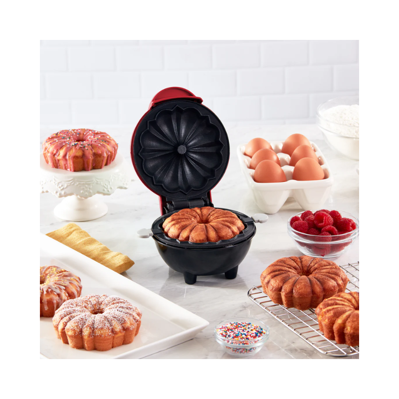 Mini Bundt® Cake Maker, você pode preparar bolos individuais fofinhos e deliciosos em apenas 10 minutos, direto na sua bancada. Compacto, prático e fácil de usar, ele possui superfície antiaderente que garante bolos perfeitos sem grudar e facilita a limpeza. Surpreenda com lindos bolos no icônico formato Bundt®, prontos para serem decorados com coberturas, glacês e muito mais. Seja para um lanche rápido, uma sobremesa charmosa ou um presente feito com amor, este aparelho é ideal para soltar a criatividade e encantar a família e os amigos. Simples, rápido e irresistíveis!