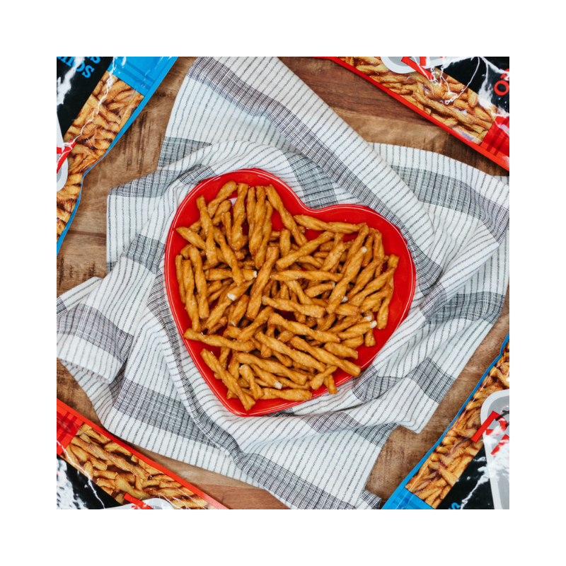Os Pretzels Dot’s nasceram de origens humildes na pequena cidade de Velva, Dakota do Norte. É um lanche que você nem sabia que precisava, mas, depois de uma mordida, é difícil parar. Experimente e embarque na aventura gastronômica da sua vida. Os pretzels em forma de torção são temperados com uma mistura secreta que dá ao lanche um sabor incrivelmente delicioso. Cada torção envolve seu paladar em uma combinação irresistível de manteiga, doce e um toque picante em cada mordida!