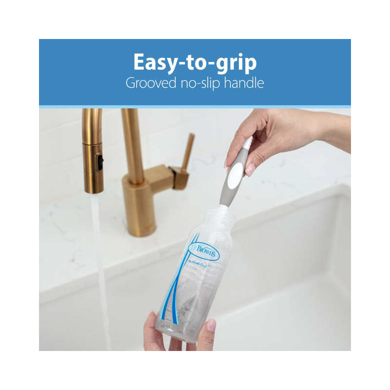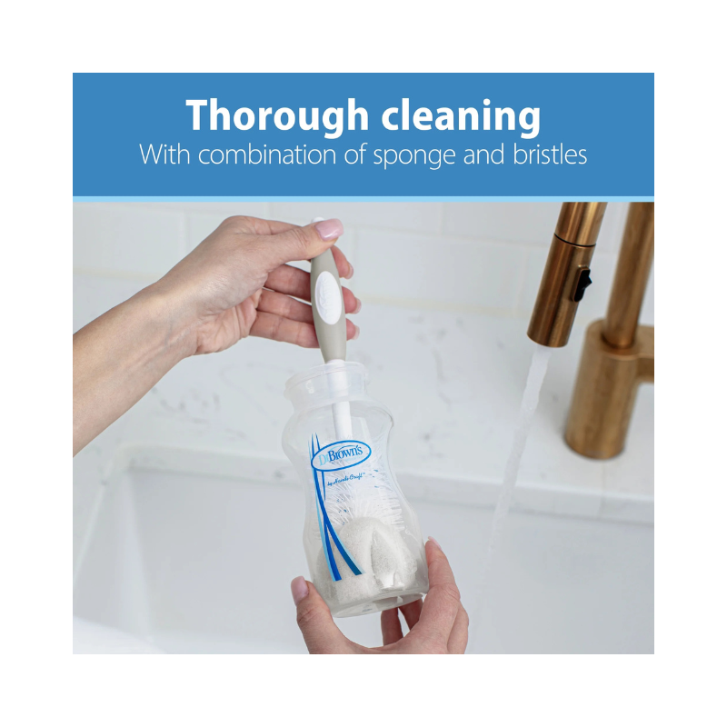 A escova para mamadeiras Dr. Brown’s torna a limpeza das mamadeiras mais fácil do que nunca! Projetada para se ajustar a mamadeiras de gargalo estreito e largo, essa escova combina cerdas e esponja para uma limpeza profunda e eficaz.