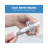 O cabo antiderrapante tem um design com ranhuras em chevron na base, especialmente desenvolvido para limpar bicos de mamadeira com facilidade. Além disso, acompanha um clip de sucção para armazenamento conveniente perto da pia.