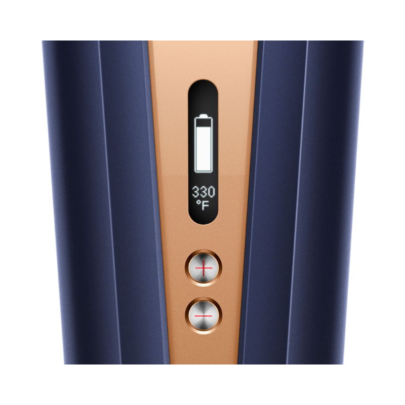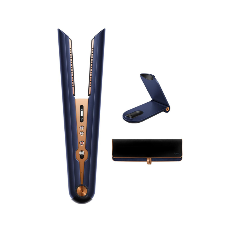 O Dyson Corrale™ está disponível em várias combinações de cores, incluindo Preto/Roxo, Cobre/Níquel e Azul Prússia/Cobre Rico, permitindo que os usuários escolham a estética que melhor se adapta ao seu estilo pessoal.