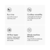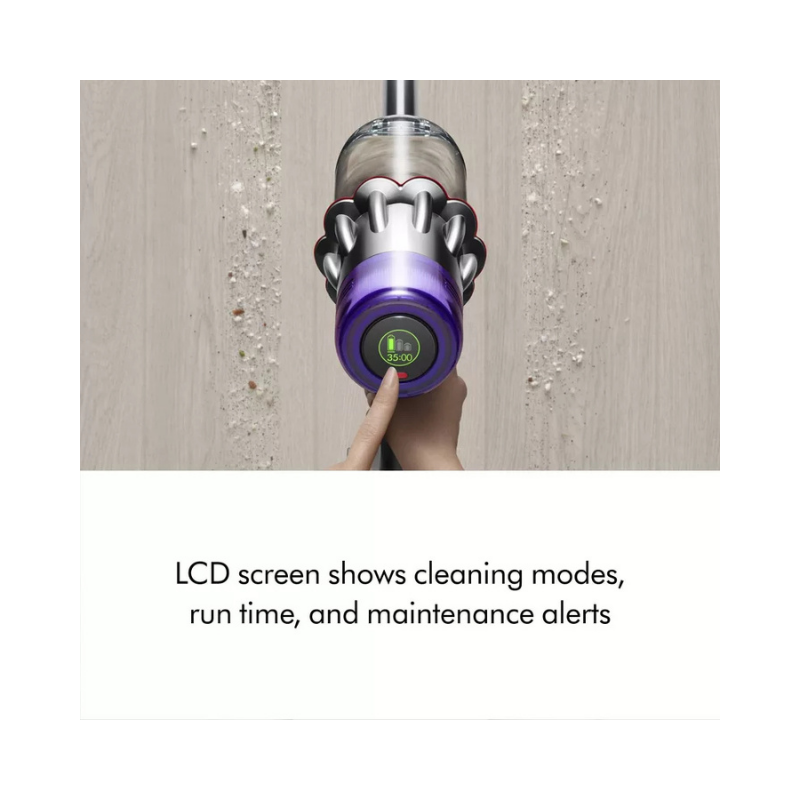 O aparelho conta com uma tela LCD para exibir modos de potência, alertas de manutenção e tempo restante. Ele oferece três modos de limpeza, acompanha três acessórios e pode ser convertido em aspirador de mão para maior versatilidade. Fabricado com materiais leves e duráveis.