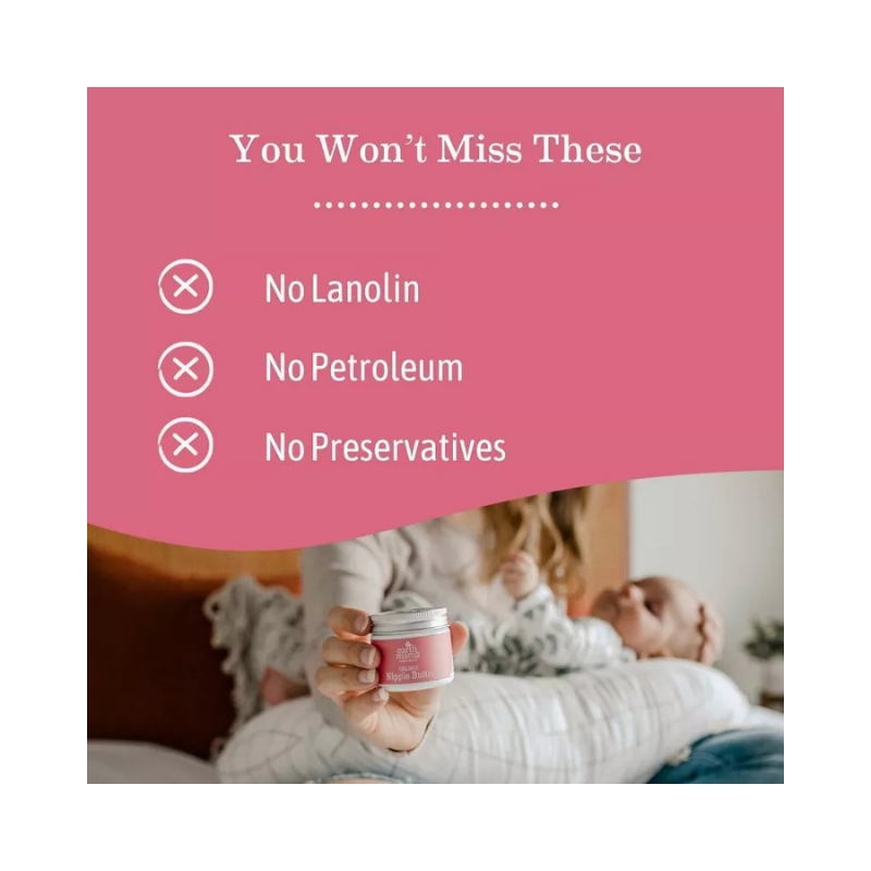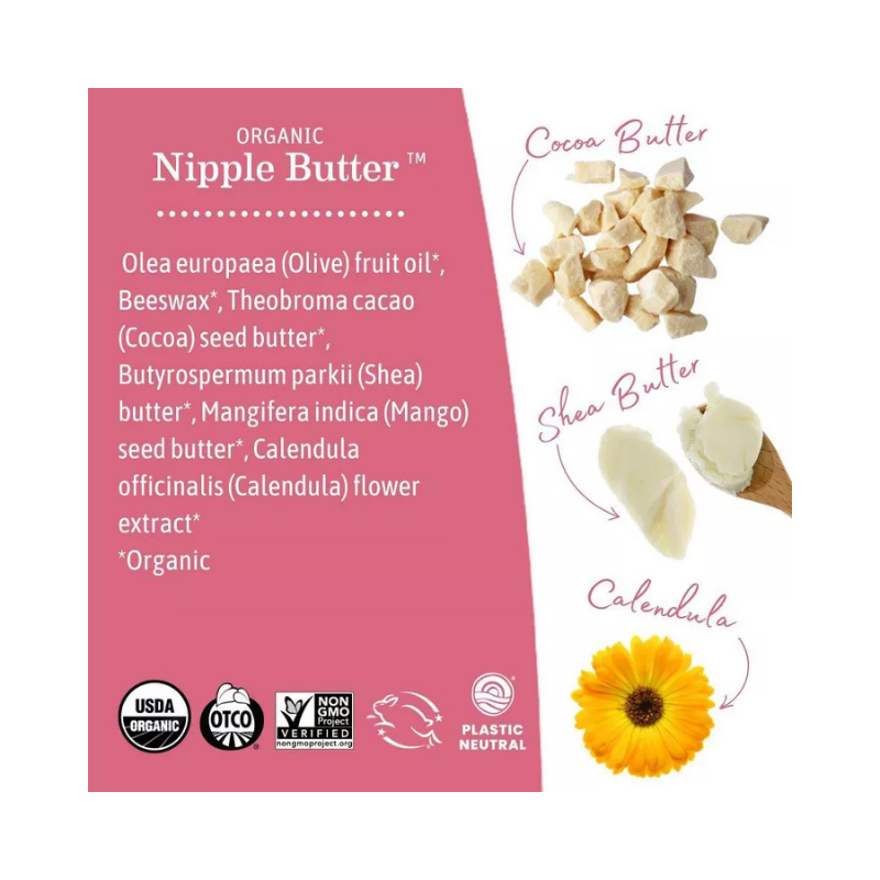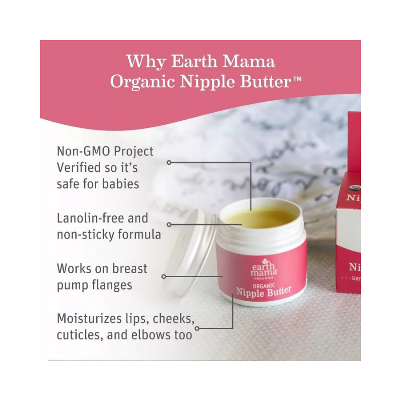 Conheça o seu super-herói dos mamilos! O Earth Mama Organic Nipple Butter™ é um creme para amamentação sem lanolina, não pegajoso, que foi o primeiro a receber a certificação Non-GMO Project Verified. Isso significa que não há necessidade de lavá-lo antes de amamentar. Sua combinação de ervas e óleos orgânicos, usados tradicionalmente para acalmar e hidratar a pele seca, é eficaz para aliviar mamilos doloridos e rachados.