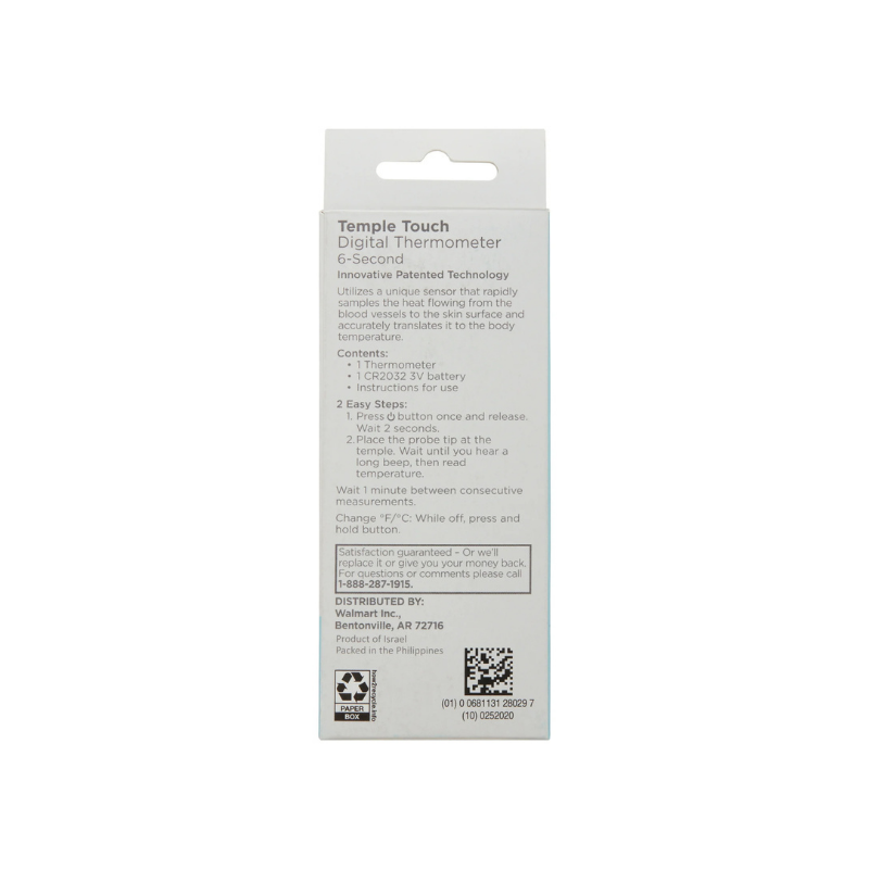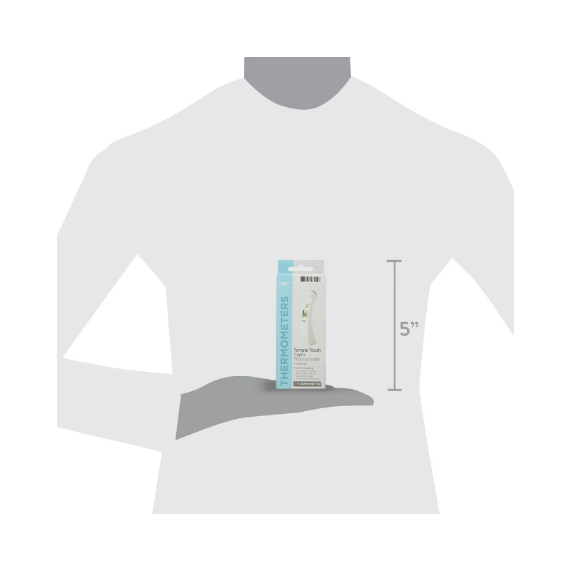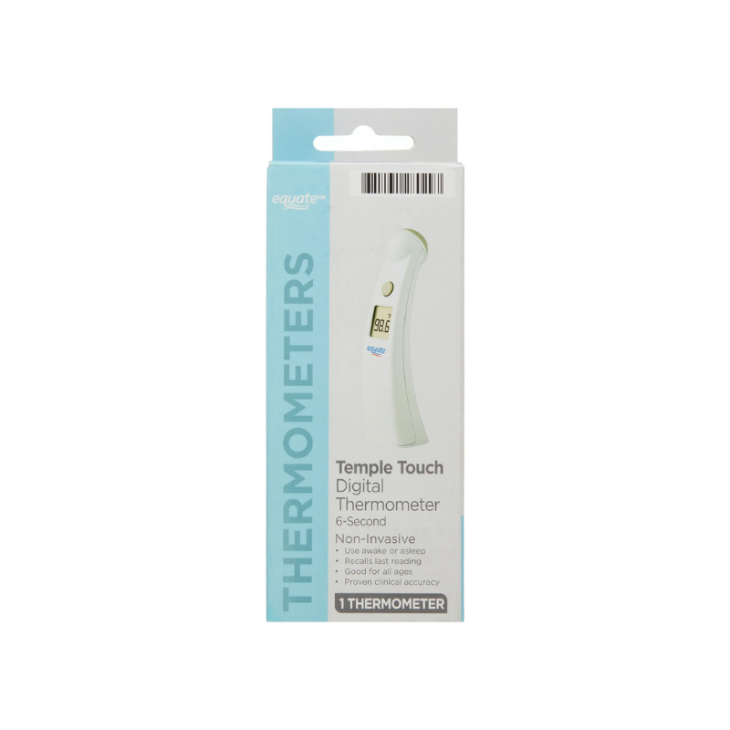 O Termômetro Digital Equate Temple Touch de 6 Segundos utiliza um sensor exclusivo que amostra rapidamente o calor fluindo dos vasos sanguíneos para a superfície da pele e o traduz com precisão para a temperatura corporal. Com precisão clínica comprovada, este termômetro digital de toque na têmpora é não invasivo e adequado para todas as idades, incluindo adultos, crianças e bebês. Você obterá uma leitura precisa da temperatura em seis segundos e poderá recordar a última medição. Cuide de seus entes queridos com confiança ao usar o Termômetro Digital Equate Temple Touch de 6 Segundos.