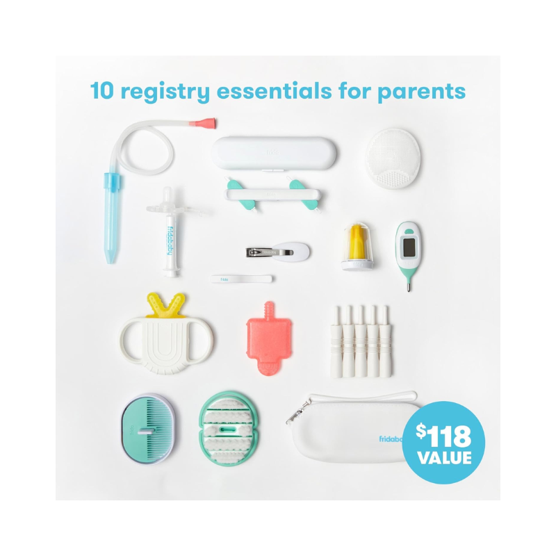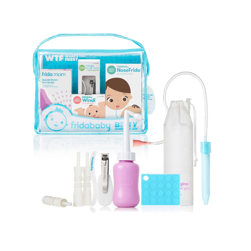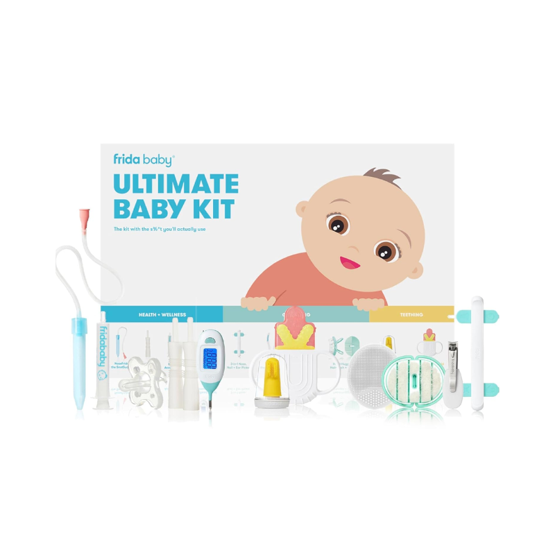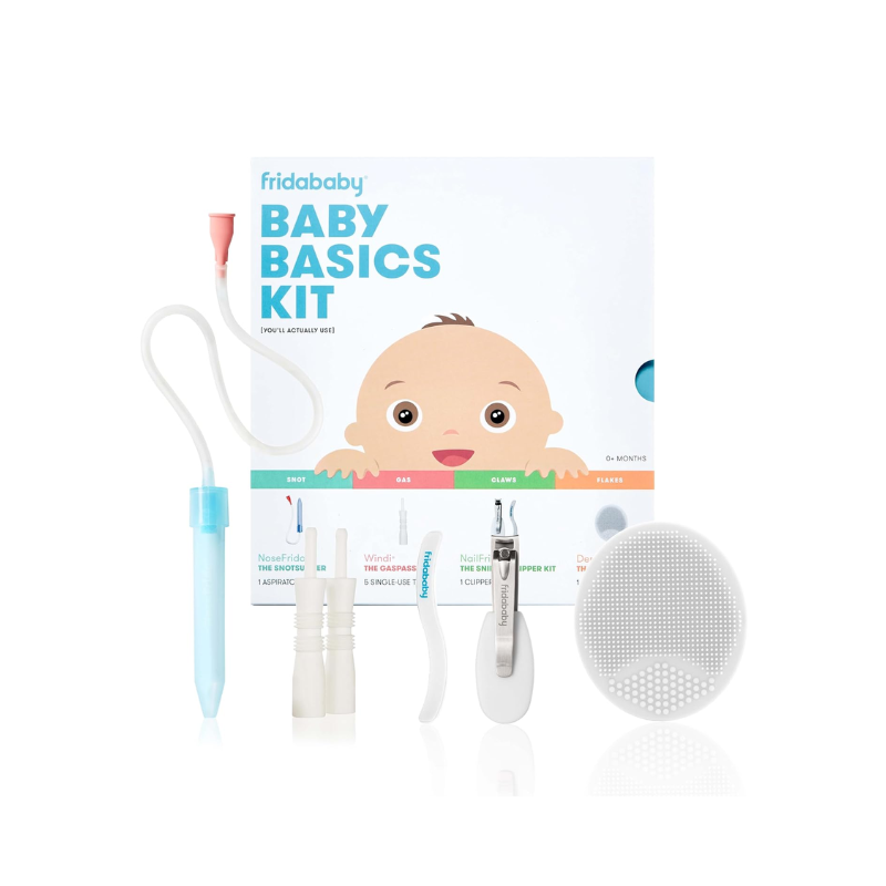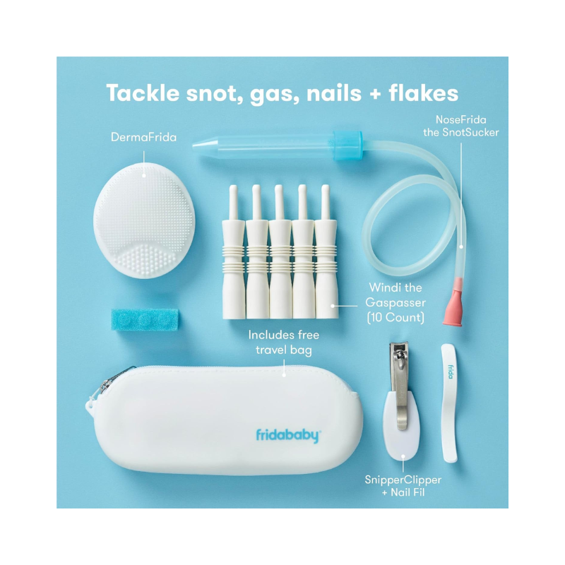 Frida Baby Basics Kit, Baby Essentials Kit Includes Nasal Aspirator Snotsucker, NailFrida Nail Files, Windi Gas Relief, DermaFrida Bath Brush + Silicone Carry Case