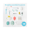 O Frida Baby Ultimate Baby Kit é um conjunto completo de cuidados essenciais para recém-nascidos e bebês, ideal como presente de chá de bebê e indispensável para novos pais. O kit contém 10 produtos fundamentais que atendem às necessidades de saúde, higiene, conforto e bem-estar dos pequenos desde os primeiros dias de vida. Entre os itens inclusos estão o NoseFrida SnotSucker, um aspirador nasal que remove o muco de forma segura e eficiente; o MediFrida Accu-Dose Paci, um dispensador de medicamentos em formato de chupeta que permite a administração precisa de doses sem causar engasgos ou cuspes; e um termômetro retal de leitura rápida, que mede a temperatura do bebê em apenas 10 segundos. Para o alívio imediato de gases e cólicas, o kit traz o Windi the Gaspasser, um tubo oco que atua naturalmente, com limitador para garantir o uso seguro. No cuidado com as unhas, o SnipperClipper Set possui um cortador com visor de segurança (spyhole) que permite cortes suaves e precisos, ideal para unhas delicadas de recém-nascidos. Para a pele, o DermaFrida the SkinSoother é uma escova de silicone que auxilia na remoção de pele seca, crosta láctea e até mesmo eczema. Além disso, o kit inclui uma escova e um pente com cerdas macias que ajudam a manter os cabelos do bebê sempre arrumados com conforto. Todos os itens são livres de BPA, ftalatos e látex, sendo totalmente seguros para os bebês. O produto é fornecido na cor branca, com organização prática e um peso total aproximado de 1,5 kg, sendo perfeito para facilitar o dia a dia dos pais e garantir conforto e segurança aos pequenos.