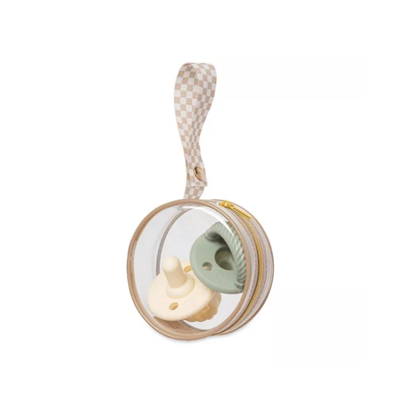 Itzy Ritzy Clear Pacifier Case – Toast Checkerboard