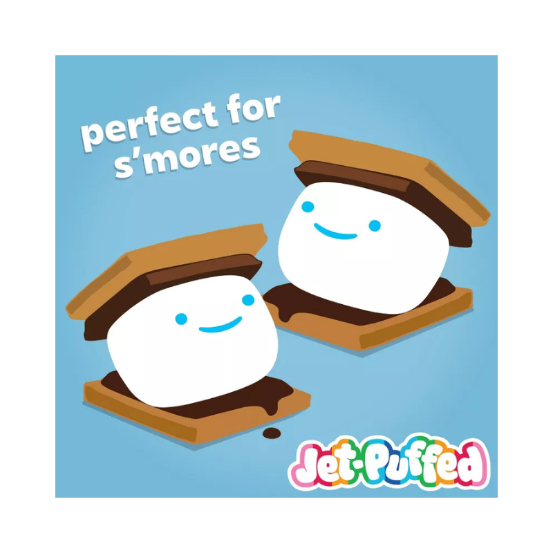 Com zero gordura trans e zero gordura total por porção, os Marshmallows Jumbo Jet-Puffed são um lanche divertido para crianças e um complemento delicioso para suas receitas favoritas. Use nossos marshmallows macios para fazer barras de cereal de arroz. Experimente assá-los e combiná-los com chocolate e biscoitos Graham para preparar os clássicos s’mores. Você também pode adicioná-los ao chocolate quente para um toque especial.