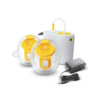 A nova bomba tira-leite elétrica dupla Medela Pump In Style Hands-free combina a eficiência e o desempenho de uma bomba de mesa com a conveniência de copos coletores vestíveis. A tecnologia MaxFlow proporciona uma extração eficiente do leite, com sucção em duas fases que imita o padrão natural de sucção do bebê. Os copos coletores vestíveis se ajustam confortavelmente ao sutiã, permitindo que você mantenha as mãos livres durante a extração. Esses copos inovadores possuem um bico de fácil despejo, que auxilia na transferência do leite, e são seguros para lava-louças, facilitando a limpeza. A combinação dos copos com a bomba compacta (538 g) oferece uma experiência superior de uso sem as mãos. O Pump In Style Hands-free também inclui um compartimento para pilhas, permitindo a utilização sem a necessidade de uma tomada por perto.