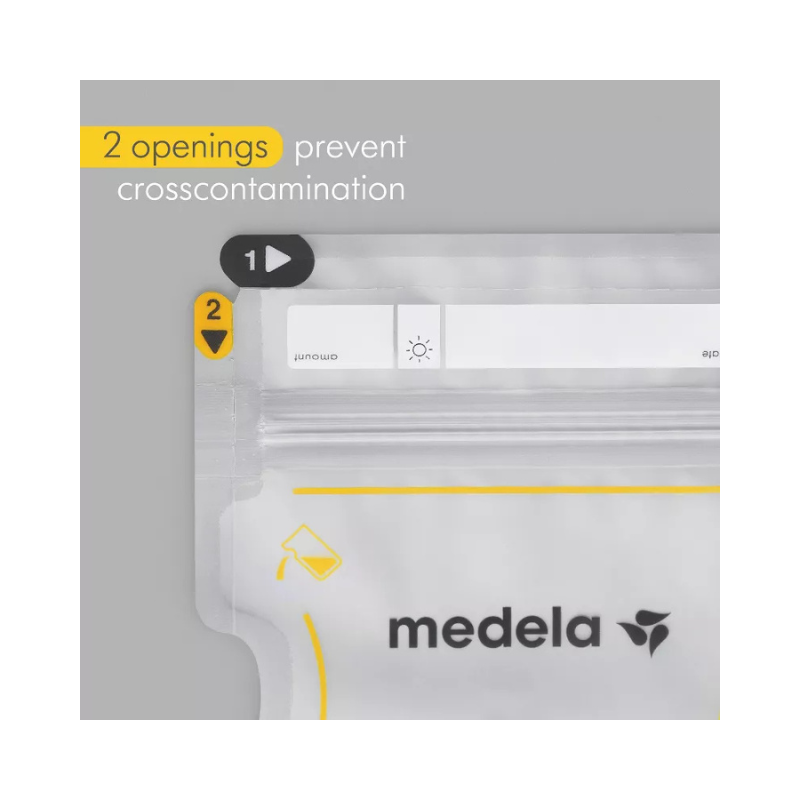 As bolsas de armazenamento de leite materno Medela Easy Pour possuem design à prova de vazamentos, com zíper duplo e construção de dupla camada para maior segurança. Elas preservam os nutrientes do leite com camadas ultra-grossas e barreira de oxigênio avançada. O design permite despejo fácil com uma mão e economiza espaço no congelador com a possibilidade de empilhar as bolsas. Feitas de material reciclável e sem BPA, são ecológicas e ideais para o armazenamento seguro do leite. Cada bolsa tem um espaço para rotulagem da data, garantindo frescor.