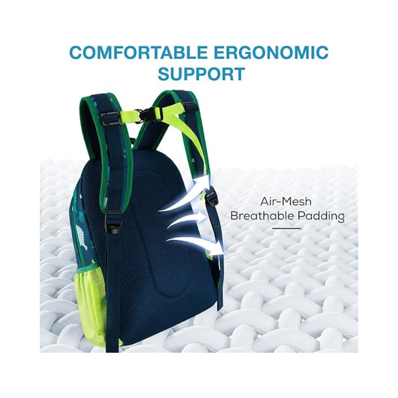 Pensando no bem-estar da criança, a mochila pesa apenas 600 g. As alças acolchoadas e ajustáveis com tecido respirável garantem um ajuste confortável durante todo o dia. A alça peitoral ajustável estabiliza o peso e promove uma postura saudável, protegendo a coluna em crescimento da criança.
