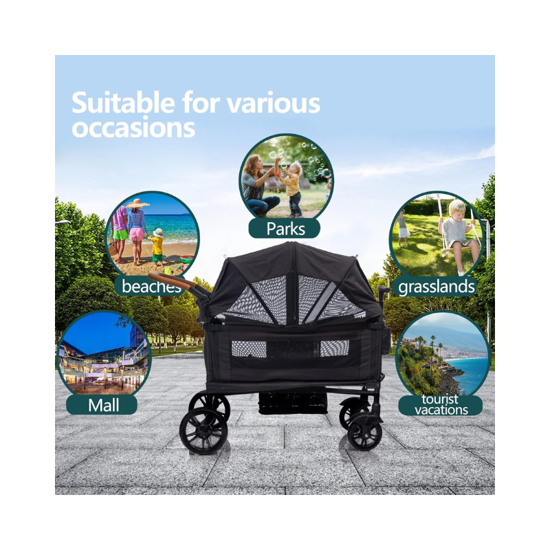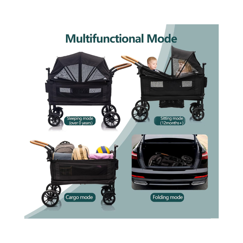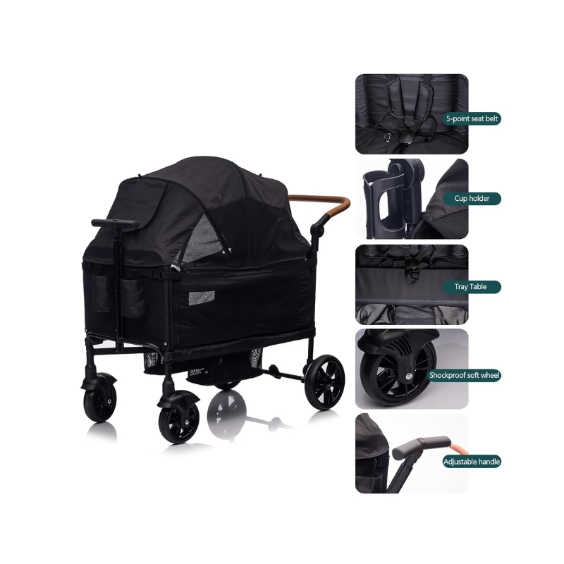 Wagon Stroller for 2 kids & Cargo-Travel Stroller Push-Pull Double Stroller Lightweight Folding Stroller for Newborn&Toddler with 5-Point Harness,Adjustable Handle Bar and Canopy,Tray Table,Cup Holder