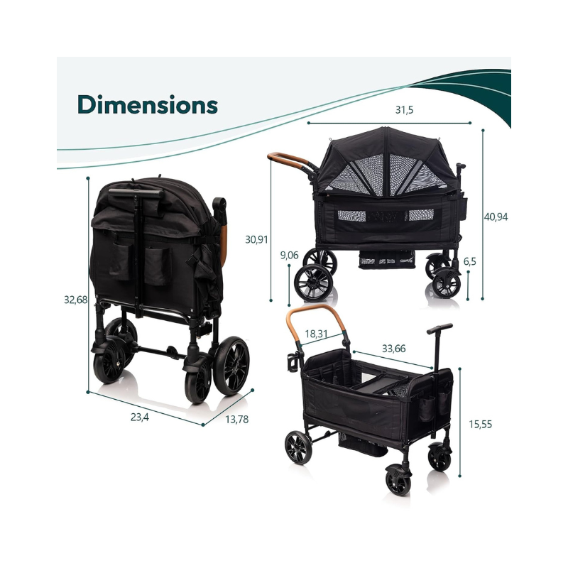 Carrinho Versátil e Funcional: Este carrinho não só se destaca no conforto e conveniência dos passageiros, mas também possui um modo de carga para suas necessidades de transporte. Seja para compras, bolsas de fraldas ou outros itens essenciais, este carrinho pode acomodar uma quantidade considerável de carga. Ele se transforma facilmente em um modo prático e eficiente para suas tarefas diárias ou viagens de compras.