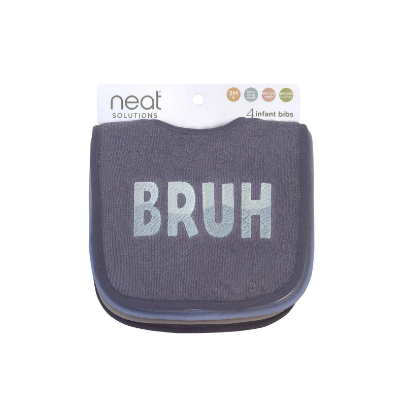Este conjunto de 4 babadores infantis Neat Solutions é tão fofo quanto as roupinhas que as mamães querem manter limpas e secas! Com frases bordadas divertidas e cheias de atitude, esses babadores vêm em uma paleta de cores moderna e estilosa.