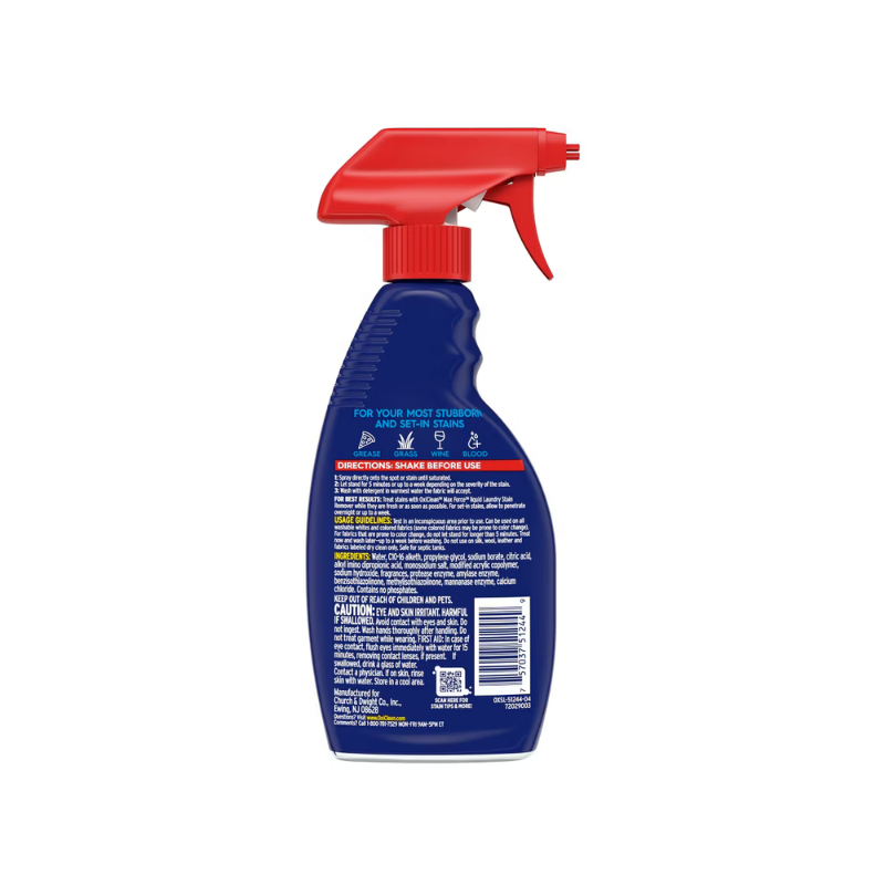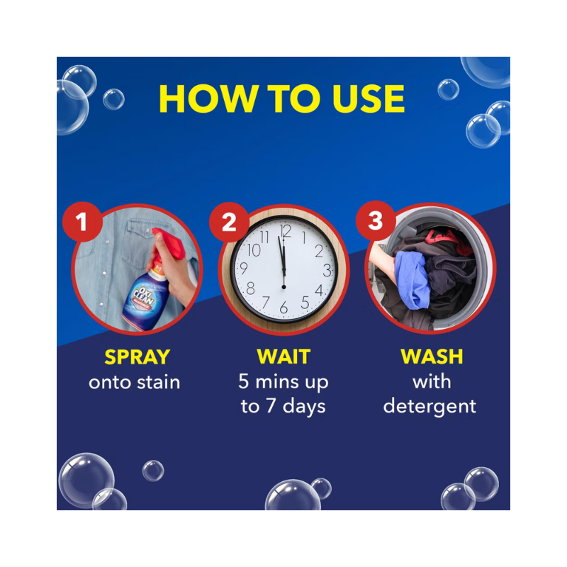 Aproveite o poder do Spray Removedor de Manchas OxiClean Max Force para eliminar manchas difíceis de roupas laváveis na máquina, toalhas, lençóis e muito mais. O spray removedor de manchas OxiClean Max Force permite que você faça a lavanderia no seu próprio ritmo—basta aplicar e aguardar cinco minutos ou até sete dias antes de lavar. Poderosos eliminadores de manchas ajudam a remover manchas já impregnadas na primeira aplicação—como grama, óleo, gordura, comida, vinho, sujeira, tinta, sangue, maquiagem e manchas de bebês. Este removedor de manchas 100% livre de corantes e cloro remove rapidamente manchas difíceis do dia a dia em tecidos brancos e coloridos, ajudando a manter tênis brancos, remover gordura de pizza da sua camisa favorita e atuar como removedor de manchas para roupas de bebês e crianças. Aplicar este removedor de manchas diretamente nas manchas até saturar e deixe agir por pelo menos cinco minutos ou até sete dias. Em seguida, lave na temperatura mais quente que o tecido permitir. Para melhores resultados, pré-trate as manchas com este removedor de manchas o mais cedo possível.