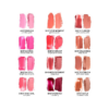 Just Enough – soft blue pink, Not Too Much – soft rosey taupe, She's the Moment (soft tangerine) – golden peach, She's Vibrant – bright pinky coral, She's a Doll – bright neutral pink, She's Giving – vibrant blue pink, She's That Girl – soft pink, She's Flushed – soft peachy pink, She's Blushing – dusty rose, She's Wanted – rich berry, She's So LA – bronzed nude