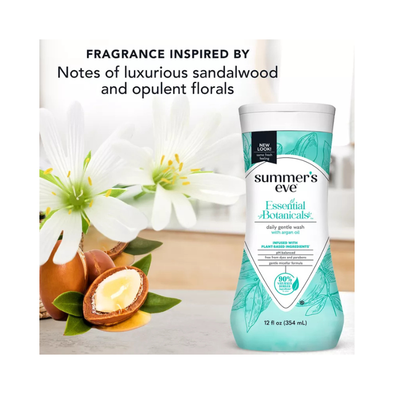 Descubra a sua sensação de frescor com o Sabonete Íntimo Summer’s Eve Essential Botanicals. Sua fórmula suave para o uso diário é composta por 90% de ingredientes de origem natural, incluindo óleo de argan.