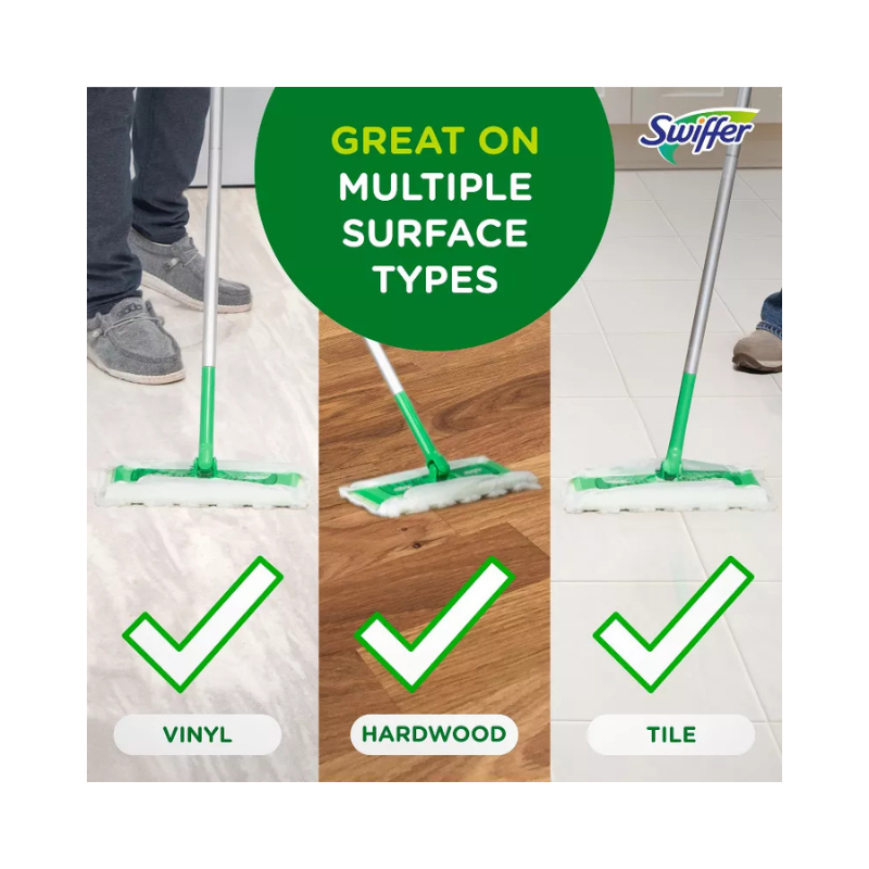 Ideal para pequenos espaços, como apartamentos e dormitórios. O Swiffer é compacto, leve e fácil de guardar.