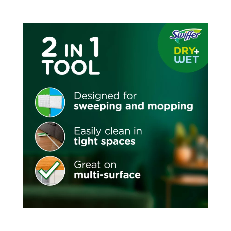 Adicione mais praticidade à sua rotina de limpeza com o Swiffer Sweeper – um 2 em 1 que combina vassoura e esfregão em um único produto, sem precisar de pá de lixo ou balde!
