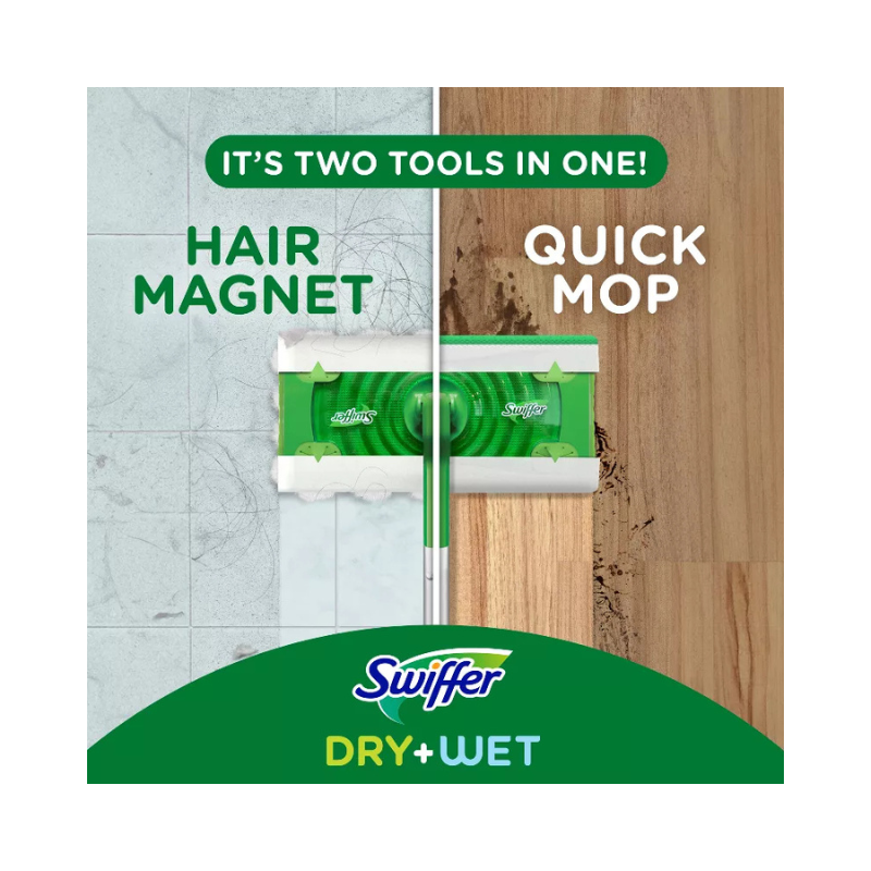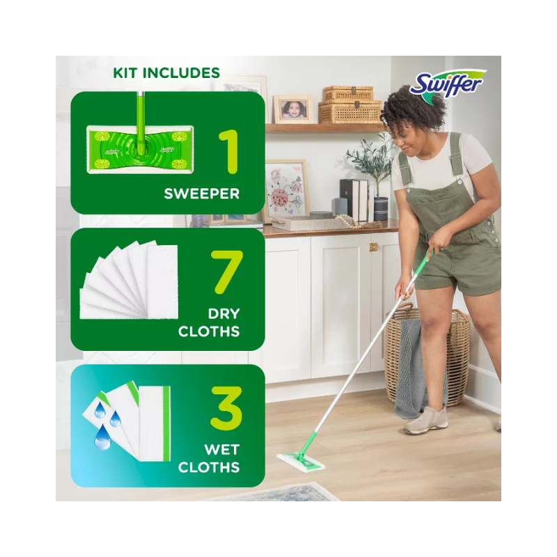Swiffer Sweeper 2-in-1 Dry + Wet Floor Mopping and Sweeping Kit 1 Sweeper, 7 Dry Cloths, 3 Wet Cloths