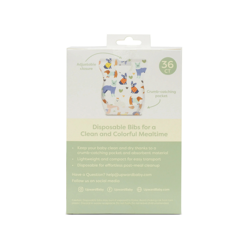 Mantenha seu bebê limpo e seco com os Babadores Descartáveis UpwardBaby. Feitos de um material absorvente e à prova de vazamentos, esses babadores são ideais para refeições bagunçadas. Eles são leves e compactos, perfeitos para usar fora de casa.