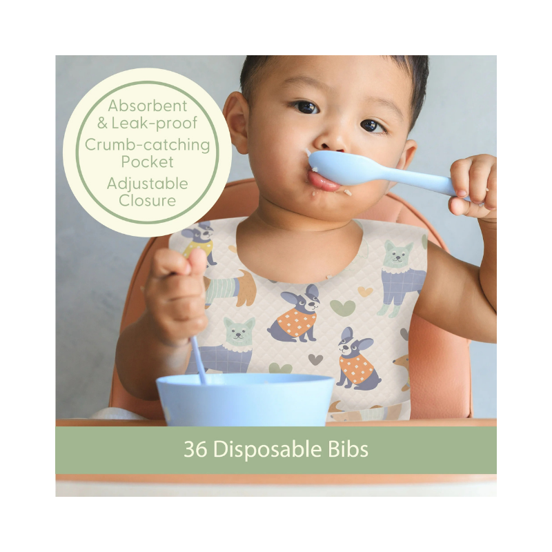 Upward Baby Food-Catching Disposable Bibs – 36-Pack – 6m+ Unisex – Infant