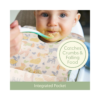 Cada babador possui um bolso coletor de migalhas, um fecho ajustável para um encaixe confortável e seguro no pescoço da criança e uma faixa adesiva traseira para fixação extra na roupa. Produzidos com materiais livres de BPA, garantem uma refeição segura e higiênica.